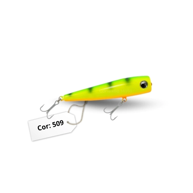 Feita de madeira e equipada com garatéias VMC, a Baca Popper proporciona resistência e desempenho em diversas condições de pesca. Seu design flutuante e ausência de rattling fazem dela uma excelente escolha para atrair predadores cautelosos.